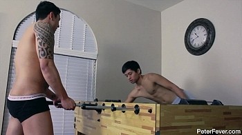 So I was playing strip billiards with Dick and he got me down to my shorts. Then we decided to start playing Foosball which I'm much better at. I scored a point and his shirt came off, then I scored another, and then I said "Get that Underwear off Bitch!" Dick said, "I might be naked but I'm going to show you who the real bitch is, Bitch! Now get the fuck over here." I came over and started sucking his hard cock. Then he bent me across the billiard table and tongued my asshole before pounding it. It felt so good, the wet feeling of his tongue up my ass. Want to see who the real winner is in the end? Watch Robin Cadiz school Dick Santorum in this week's episode of the Asiancy Season 4 - "Foosball."