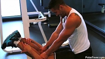 So Peter and I headed to the gym and saw all these hot buff guys working out. I could smell the musk radiating from them, it was intoxicating. On the way to the free weights we noticed Trey Turner doing crunches. I've never noticed how ripped his body looked. He suggested we have public sex in the locker room; the idea was tempting but there were too many people and we could get caught. We started working out and he spotted me on the bench press. As I was pumping iron, I could see his dick growing bigger and bigger. He must have loved seeing me flex my bulging muscles. The sexual tension was building and I grabbed his hard cock through his shorts. I felt naughty doing this in front of everyone. Fuck, I couldn't hold it in anymore; I wanted to stretch his ass out next! We have to go to the locker room now! I just hope we don't get caught. Watch Trey Turner and Diego Vena in this week's episode, "Pump You Up."