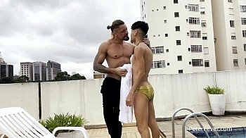 Hanry leaves a card for Travis that he's having an afternoon swim by the pool. That's not ALL he's having! He sees horny muscle stud Daniel Toro there when he climbs out of the water and they're off to the races, kissing and grinding their thick swollen crotches together. Up in the hotel room they doff their duds and rub their dicks on the couch. Daniel spreads his powerful thighs open while Hanry gets a musky mouthful of hot Brazilian sausage, and our boy gets the message that this muscleman wants his big hairy ass plowed.