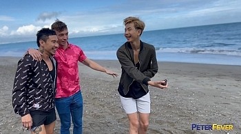 The threesome wish Carlotta a happy journey up the rainbow bridge, and Occitan invites Travis and Nolan to a bedroom playtime that will make them even happier. Offering a juicy blowjob to Travis while he's giving his ass to Nolan, Occitan is the perfect example of hotel service with more than a smile. He takes turns swallowing down both Nolan's and Travis' big American cocks. Lying back with legs spread wide, he welcomes both his guests to fill up his hungry asshole. Like the Tower of Babel, this hotel suite is a cacophony of sex talk in English and Occitan's native French. Once Travis sprays his sperm, Occitan's booty is leaking a big creamy load. And Nolan bids his final goodbye to the pink Lotus with a sticky wad aimed right into the concierge's handsome face. "Welcome to the Pink Lotus," he purrs in his sexy Frenchified English.